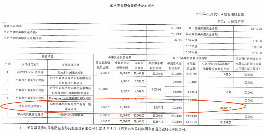 昆藥集團(tuán)原定計(jì)劃投資10,000萬(wàn)元用于“創(chuàng)新藥物研發(fā)項(xiàng)目”建設(shè),由于公司規(guī)劃布局調(diào)整,項(xiàng)目工程建設(shè)暫未正式開(kāi)展,后變更為“對(duì)昆藥集團(tuán)醫(yī)藥商業(yè)有限公司增資項(xiàng)目”。然而該項(xiàng)目也并未啟動(dòng),后該募投項(xiàng)目變更為“口服固體制劑智能生產(chǎn)基地一期建設(shè)項(xiàng)目”。