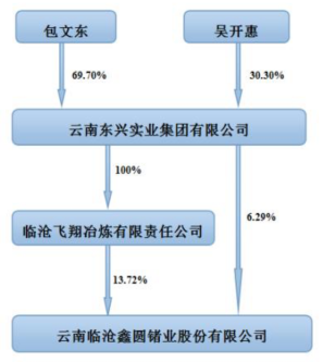 云南鍺業(yè)控股股東臨滄飛翔系東興集團(tuán)全資子公司,東興集團(tuán)同時(shí)持有云南鍺業(yè)6.29%的股份。