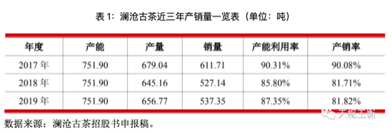 瀾滄古茶招股書披露“2017年-2019年,瀾滄古茶實現(xiàn)營業(yè)收入分別為24,975.43萬元、29,912.88萬元、38,046.72萬元,年復(fù)合增長率為23.42%”但是普洱茶行業(yè)其他幾家新三板掛板公司的財報顯示,近年來普洱茶業(yè)務(wù)增速均為下滑;而中茶股份招股書申報稿則披露,2018年到2019年,該公司普洱茶產(chǎn)量從929噸增加到1,533噸,但是每公斤普洱茶的單價從289.83元下降到218.44元,降幅為24.63%。