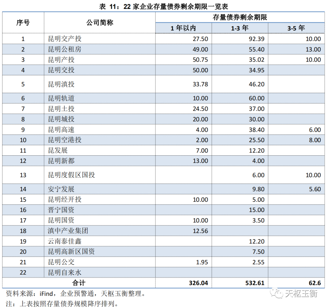 天樞觀察:昆明市屬及縣區(qū)有公開市場(chǎng)融資的企業(yè)10月末止債務(wù)情況