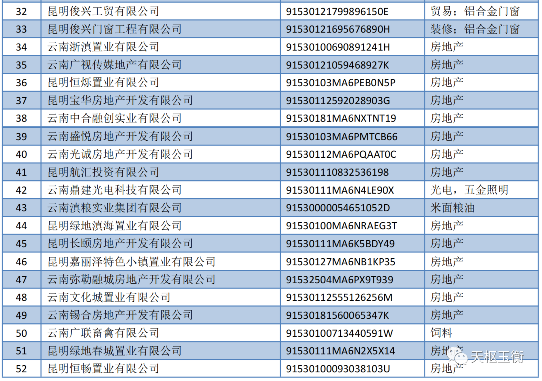 天樞玉衡根據(jù)北京票據(jù)交易所的公告信息,篩選了公司名稱包含“云南”和“昆明”的企業(yè),共計有60家公司有商票持續(xù)逾期情況,具體名單如下: