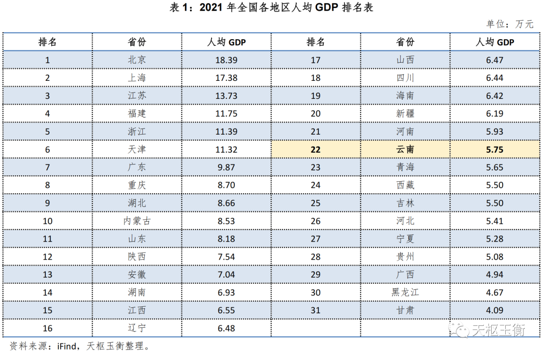最近十年,云南省人均地區(qū)生產(chǎn)總值不斷提高,2021年達到57,686元,排大陸31個省區(qū)的第22位,雖然遠低于全國平均水平的80,976元,但領(lǐng)先于青海、西藏、吉林、河北、寧夏、貴州、廣西、黑龍江和甘肅等省區(qū)。