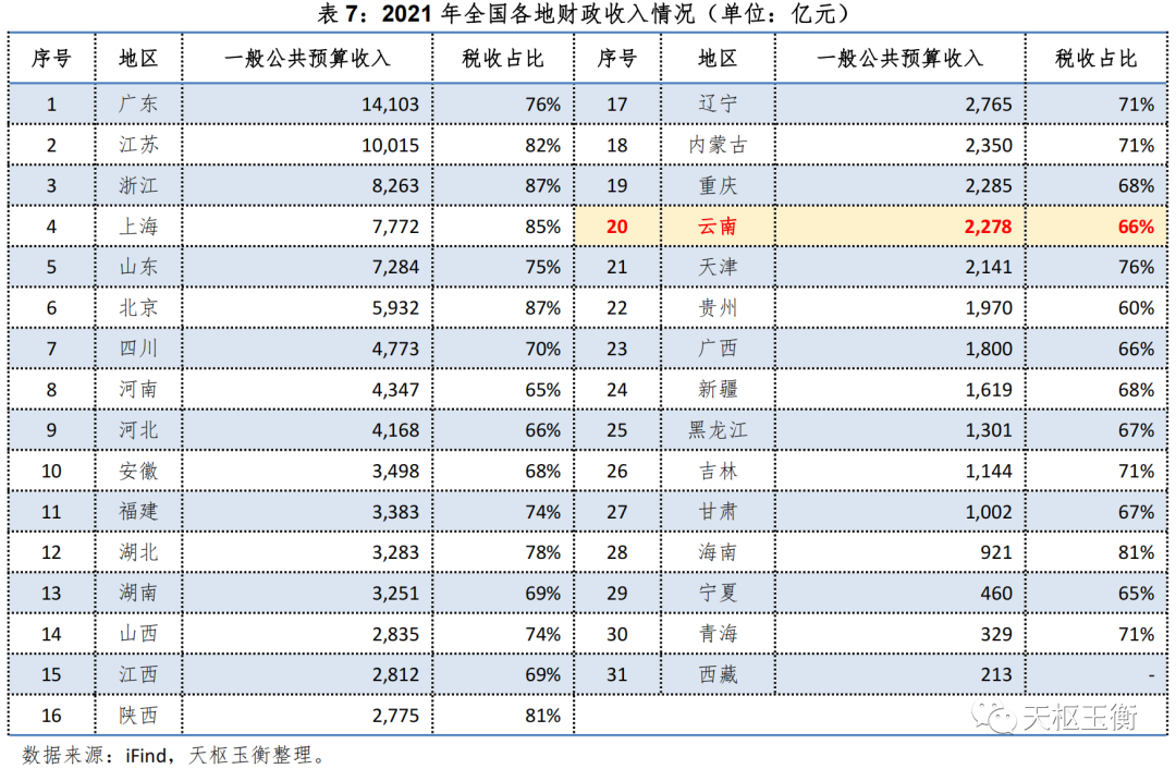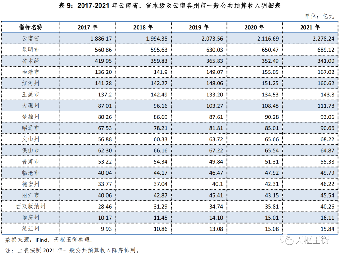 天樞觀察:云南省經(jīng)濟與財政發(fā)展水平及投融資公司負債情況