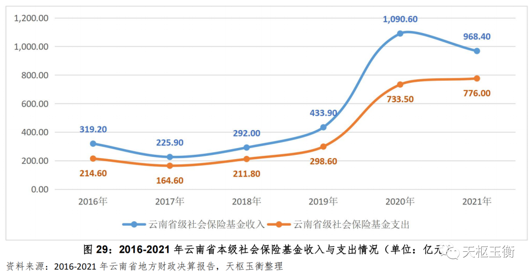 省級社會保險基金收入968.4億元,省級社會保險基金支出776億元,收支相抵,本年結(jié)余192.5億元,加上以前年度結(jié)余1,293.9億元,年末滾存結(jié)余1,486.4億元。