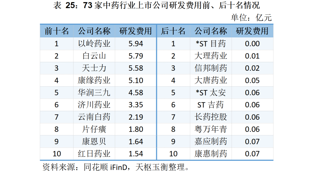 研發(fā)費用方面,以嶺藥業(yè)、白云山、天士力和康緣藥業(yè)的研發(fā)費用投入均超過5億元。