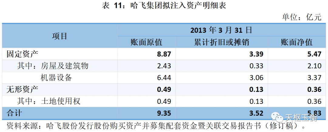 哈飛集團(tuán)本次擬注入的資產(chǎn)主要為其擁有的直升機(jī)零部件生產(chǎn)相關(guān)的資產(chǎn),包括房屋、土地、設(shè)備等。截至2013年3月31日,哈飛集團(tuán)擬注入資產(chǎn)的情況如下: