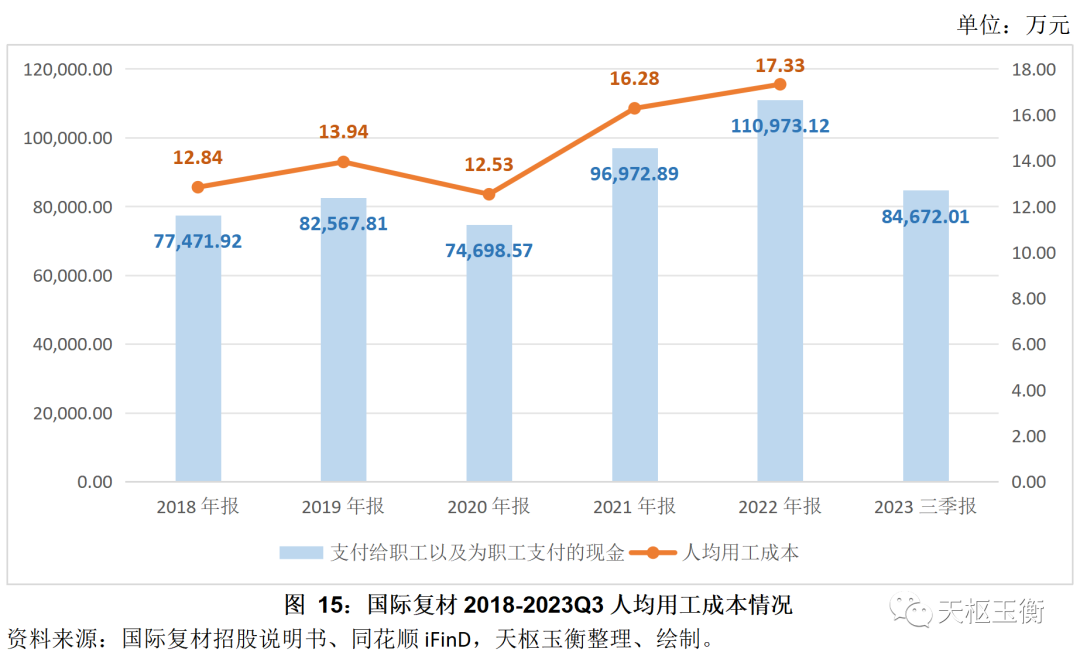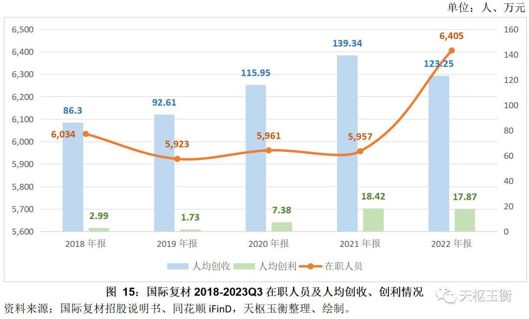 在毛利率方面,除了2020年國際復材的毛利率為25%以外,2018-2022年國際復材的毛利率都一本保持在30%附近;2023年前三季度的毛利率則為22.48%,創(chuàng)下近年來新低。