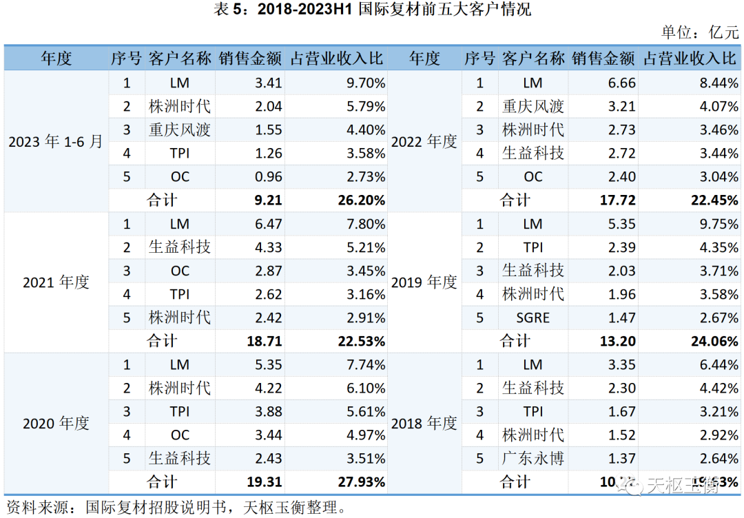 國際復材所生產(chǎn)的產(chǎn)品玻璃纖維及其制品是一種新型材料,其復合材料制品能夠替代鋼、鋁、木材、水泥、PVC等多種傳統(tǒng)材料,在風電葉片、汽車制造、軌道交通、電子通信、家用電器、建筑材料、工業(yè)管罐、航空航天等多個領域具有廣泛的應用。國際復材與主要客戶已建立了長期穩(wěn)定合作關系,由于公司產(chǎn)品應用范圍廣泛,下游客戶較為分散。,因此下游客戶較為分散,沒有對某幾個客戶嚴重依賴的情形。