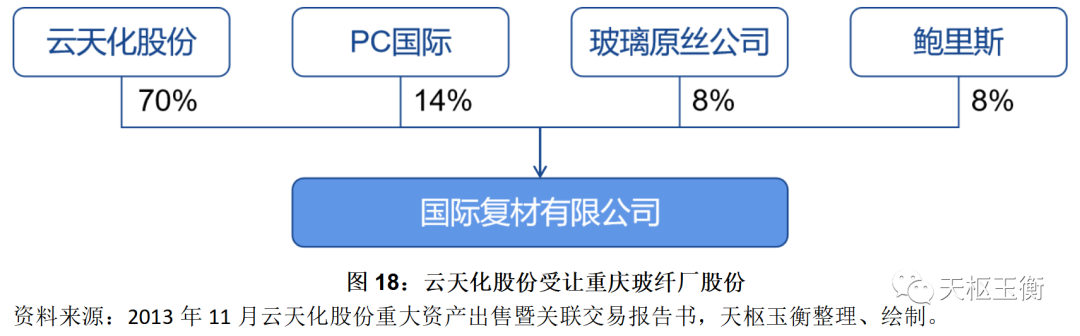 根據(jù)云天化2000年年報顯示,云天化股份于1999年7月31日根據(jù)董事會決定受讓重慶玻璃纖維廠持有的重慶國際復合材料有限公司全部股權,占重慶國際復合材料有限公司總股本的70%,原始投資額為27,058,814.00元。重慶國際復合材料有限公司注冊資本435萬美元,經(jīng)營范圍:生產(chǎn)和銷售無堿玻璃纖維系列產(chǎn)品,玻璃纖維增強塑料產(chǎn)品,玻璃纖維用浸潤劑及助劑,玻璃纖維成套技術與成套裝備的研發(fā)與制造。