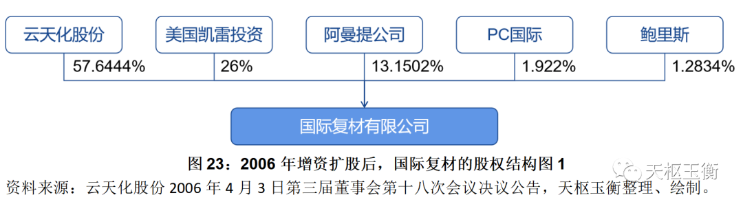 根據(jù)云天化股份2006年4月3日第三屆董事會第十八次會議決議公告顯示,國際復材增資擴股的增資方主要有:云天化股份,本次投資3000萬美元(用人民幣投入)參與公司控股子公司國際復材增資擴股;美國凱雷投資集團,本次投資6500萬美元參與公司控股子公司國際復材增資擴股;原外方股東均放棄參與本次增資擴股。