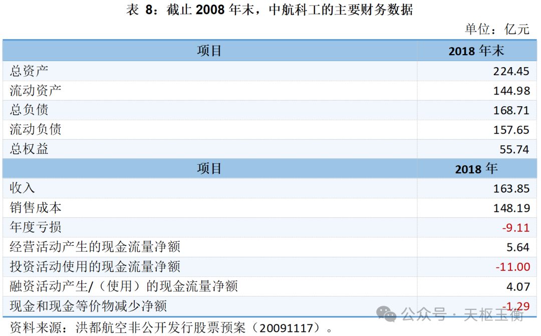 截止2008年末,中航科工的主要財(cái)務(wù)數(shù)據(jù)如下所示: