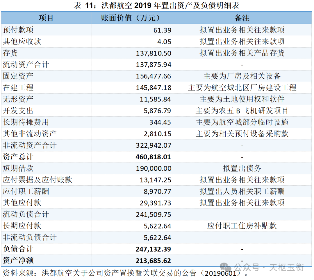 截至基準(zhǔn)日2018年11月30日,洪都航空擬置出資產(chǎn)的資產(chǎn)總額為460,818.01萬元,負(fù)債總額為247,132.39萬元,凈資產(chǎn)為213,685.62萬元。