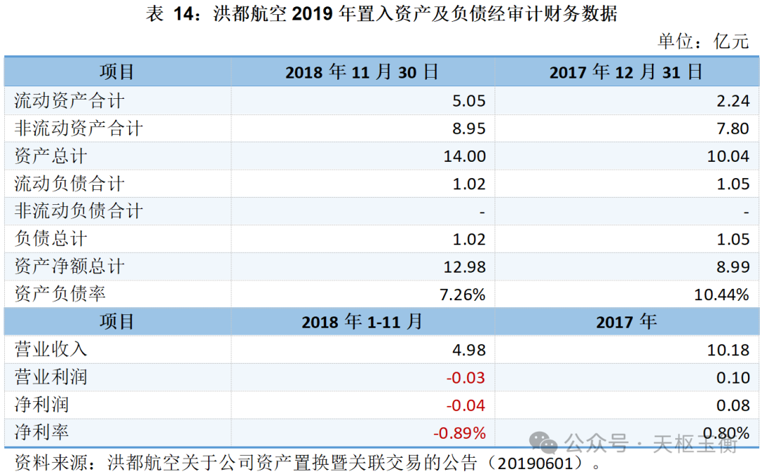 截至2018年11月30日,洪都航空擬置出資產(chǎn)的資產(chǎn)總額為460,818.01萬元,負(fù)債總額為247,132.39萬元,凈資產(chǎn)為213,685.62萬元;擬置入資產(chǎn)的資產(chǎn)總額為139,957.25萬元,負(fù)債總額為10,163.86萬元,凈資產(chǎn)為129,793.39萬元。