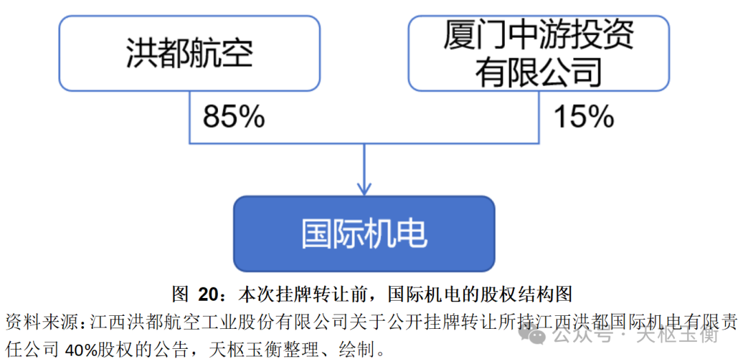 2021年3月,洪都航空擬將所持江西洪都國際機(jī)電有限責(zé)任公司40%股權(quán)通過通過北京產(chǎn)權(quán)交易所公開掛牌轉(zhuǎn)讓;與此同時,擬將所持有的國際機(jī)電10%股權(quán)以協(xié)議轉(zhuǎn)讓方式轉(zhuǎn)讓給國際機(jī)電員工持股平臺。