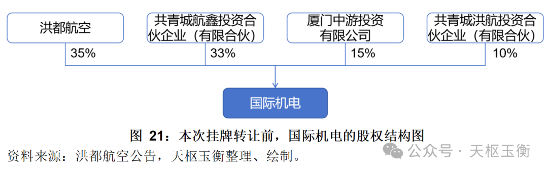 2021 年5月21日,洪都航空按照4600萬元的價(jià)格,將持有的國際機(jī)電40%股權(quán)通過北京產(chǎn)權(quán)交易所公開交易程序轉(zhuǎn)讓給共青城航鑫投資合伙企業(yè)(有限合伙),并簽署了《產(chǎn)權(quán)交易合同》。