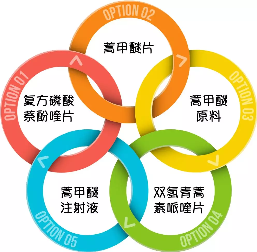 截至目前,昆藥集團所銷售的青蒿素類產品用途均為瘧疾治療,目前在售的青蒿素類抗瘧藥產品包括一下五種: