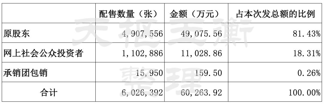 本次可轉(zhuǎn)債向原股東發(fā)行的數(shù)量和配售比例如下: