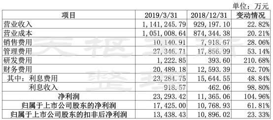 2019年一季度,云錫完成營收89.67億元,雖較去年同期小幅下滑,歸屬于上市公司股東的凈利潤1.94億元,較去年同期的1.76億元增幅近10%。