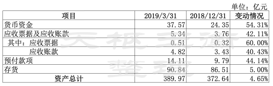 公司由于銷售量大幅上升,營業(yè)收入和營業(yè)成本也相應(yīng)的大幅度上漲,然而,公司的應(yīng)收票據(jù)、應(yīng)收賬款、預(yù)付賬款較2018年年末也分別上漲了60%、40%和44%。
