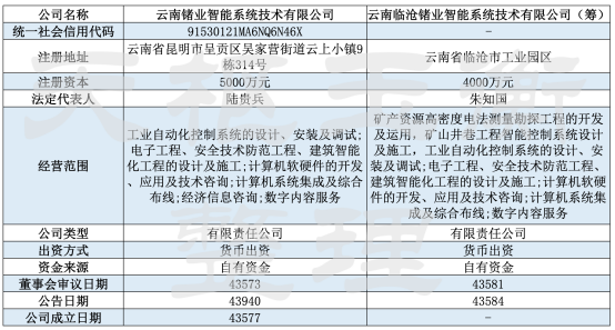 繼2019年4月19日云南鍺業(yè)發(fā)布公告將出資5,000萬元注冊(cè)成立全資子公司云南鍺業(yè)智能系統(tǒng)技術(shù)有限公司之后的短短10天內(nèi),云南鍺業(yè)發(fā)布公告稱,擬再次出資4,000萬元注冊(cè)成立一家全資子公司——云南臨滄鍺業(yè)智能系統(tǒng)技術(shù)有限公司。