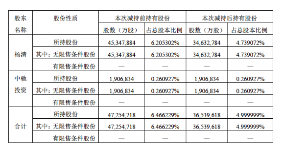 股東楊清及其一致行動人本次減持前后持股情況如下: