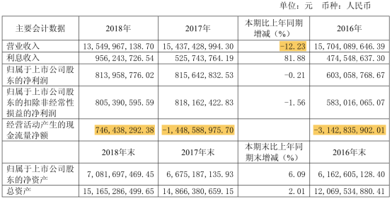 2018年,易見股份完成營業(yè)收入135.50億元,較2017年下跌了12%;扣非后凈利潤8.05億元,同比下滑1.56%;企業(yè)經(jīng)營現(xiàn)金凈流量為7.46億元。
