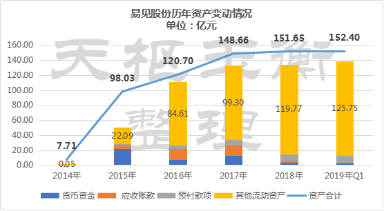 在資產(chǎn)方面,公司資產(chǎn)自2015年開始變大幅上升,其中其他流動資產(chǎn)的增長比率最為迅猛。