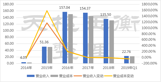 2019年一季度,公司經(jīng)營情況則有所下滑,其中營業(yè)收入22.76億元,較去年同期下跌近50%;扣非后凈利潤2.01億元,同比僅下滑4.85%;企業(yè)經(jīng)營現(xiàn)金凈流量則為-0.69億元。