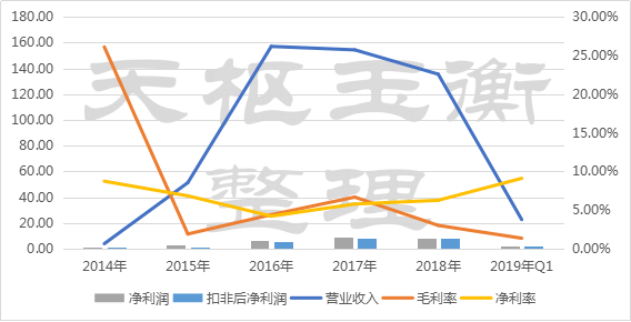 易見股份2018年完成營業(yè)收入135.50億元,較2017年下跌了12%;扣非后凈利潤8.05億元,同比下滑1.56%;企業(yè)經(jīng)營現(xiàn)金凈流量為7.46億元;2019Q1經(jīng)營情況則有所下滑,其中營業(yè)收入22.76億元,較去年同期下滑48.69%;扣非后凈利潤2.01億元,同比僅下滑4.85%;企業(yè)經(jīng)營現(xiàn)金凈流量則為-0.69億元;
