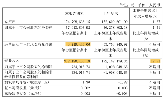2019年一季度,ST滬科完成營業(yè)收入3.12億元,較去年同期大幅上漲62.51%;扣非后凈利潤73.49萬元,實現(xiàn)扭虧為盈;企業(yè)經(jīng)營現(xiàn)金凈流量則仍為-371.94萬元。