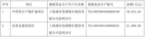 日前,一心堂與上海浦東發(fā)展銀行股份有限公司昆明分行及東興證券股份有限公司簽訂了《募集資金三方監(jiān)管協(xié)議》,募集資金專用賬戶賬戶信息具體如下: