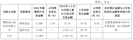 基于昆鋼重裝集團(tuán)生產(chǎn)經(jīng)營需要,云煤能源全資子公司昆鋼重裝集團(tuán)將與關(guān)聯(lián)企業(yè)攀枝花云鈦實(shí)業(yè)有限公司發(fā)生1.2億元的關(guān)聯(lián)交易,具體情況如下:
