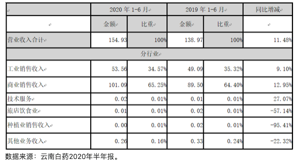 數(shù)據(jù)來源:云南白藥2020年半年報