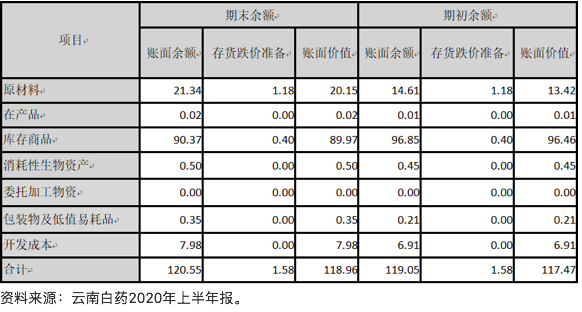 表4:云南白藥2020年存貨上半年的結(jié)構(gòu)變化