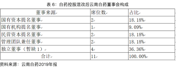 改革后,白藥高管和員工全員去行政化,既不是傳統(tǒng)國有控股上市公司,也不是民營資本控股上市公司,更不是管理者內(nèi)部人控制,而是無實(shí)際控制人、有黨的領(lǐng)導(dǎo)、國有資本參股、民營資本參股、社會公眾和機(jī)構(gòu)投資者持股近半的純粹市場化現(xiàn)代企業(yè)。這一點(diǎn),從公司治理架構(gòu)方面可以清晰看出:國有資本和民營資本均持股25.14%并列第一大股東;董事會中國有股東董事2位、民營股東董事2位、管理團(tuán)隊(duì)董事2位、國有機(jī)構(gòu)投資者董事1位、獨(dú)立董事4位(暫缺1位)。