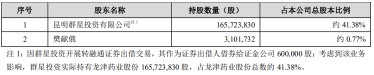2022年1月6日,龍津藥業(yè)發(fā)布公告稱,公司控股股東、實際控制人昆明群星投資有限公司和樊獻俄先生計劃減持所持有的龍津藥業(yè)股份。目前,群星投資和樊獻俄先生分別持有龍津藥業(yè)41.38%和0.77%,持股情況如下: