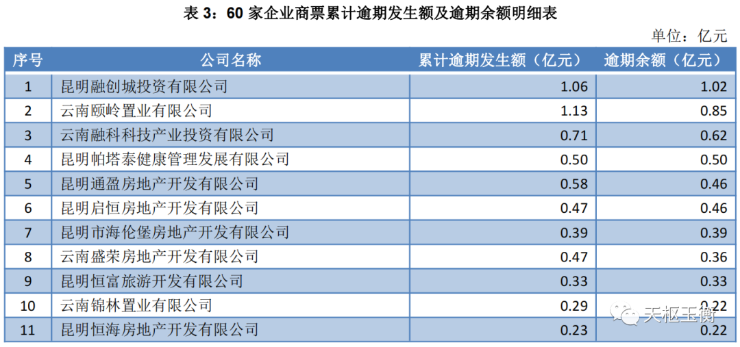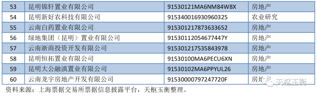 天樞玉衡根據(jù)北京票據(jù)交易所的公告信息,篩選了公司名稱包含“云南”和“昆明”的企業(yè),共計有60家公司有商票持續(xù)逾期情況,具體名單如下: