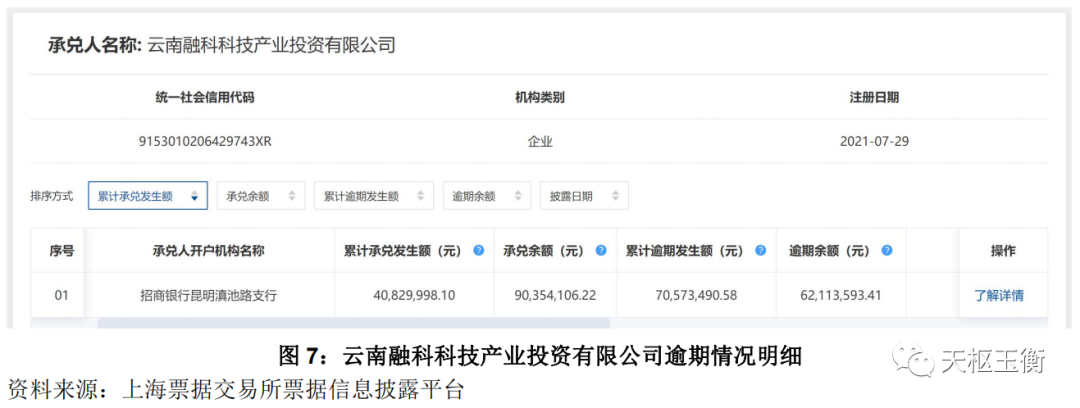 云南融科科技產(chǎn)業(yè)投資有限公司累計發(fā)生商票逾期0.71億元,目前尚有0.62億元逾期未付。