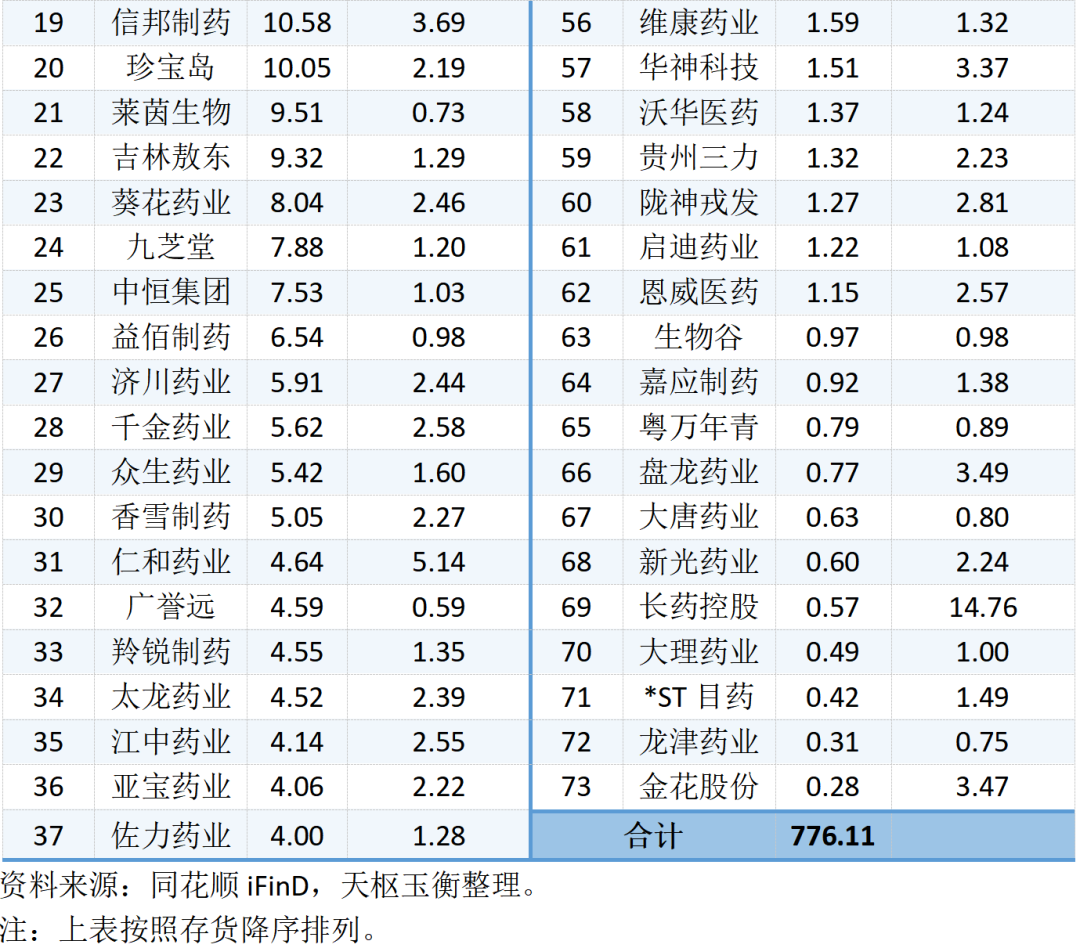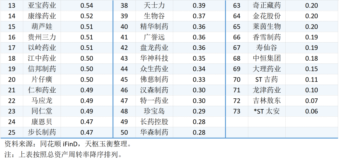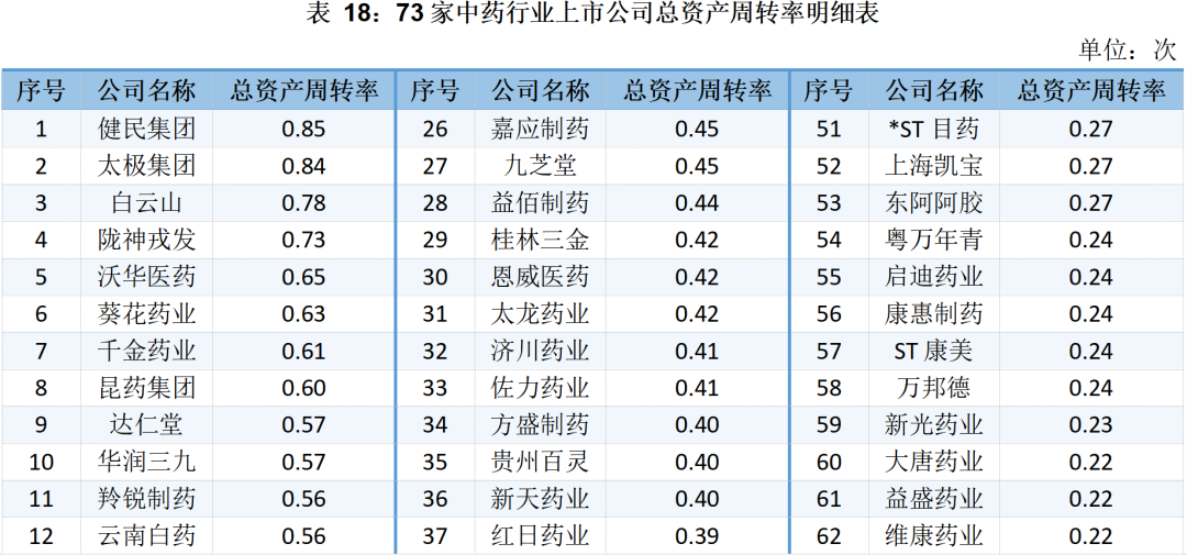 73家中藥行業(yè)上市公司存貨及存貨周轉率明細表如下所示: