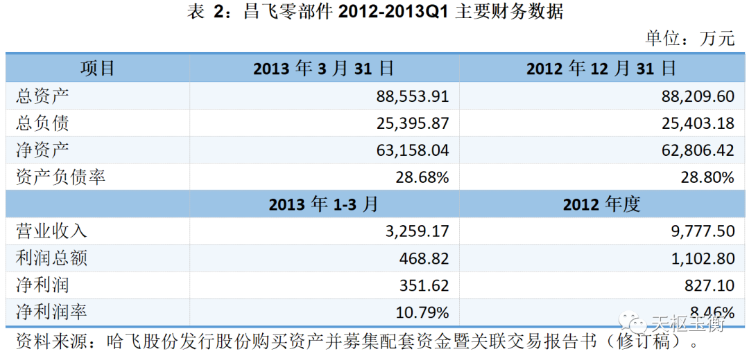 根據(jù)經(jīng)中瑞岳華審計(jì)的財(cái)務(wù)報(bào)告,2012年-2013年一季度昌飛零部件的主要財(cái)務(wù)數(shù)據(jù)如下:
