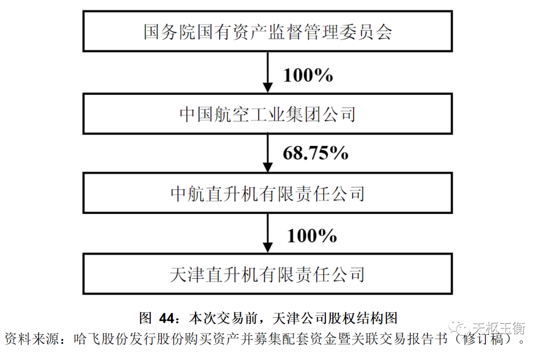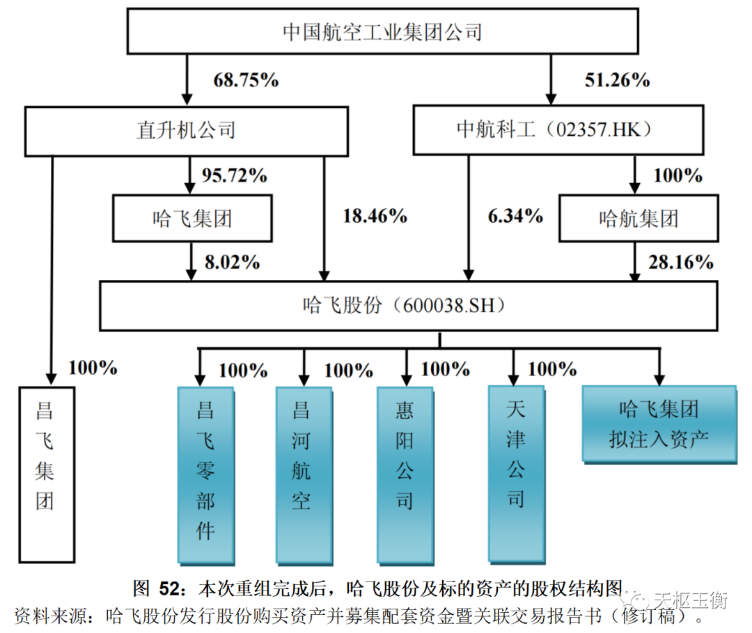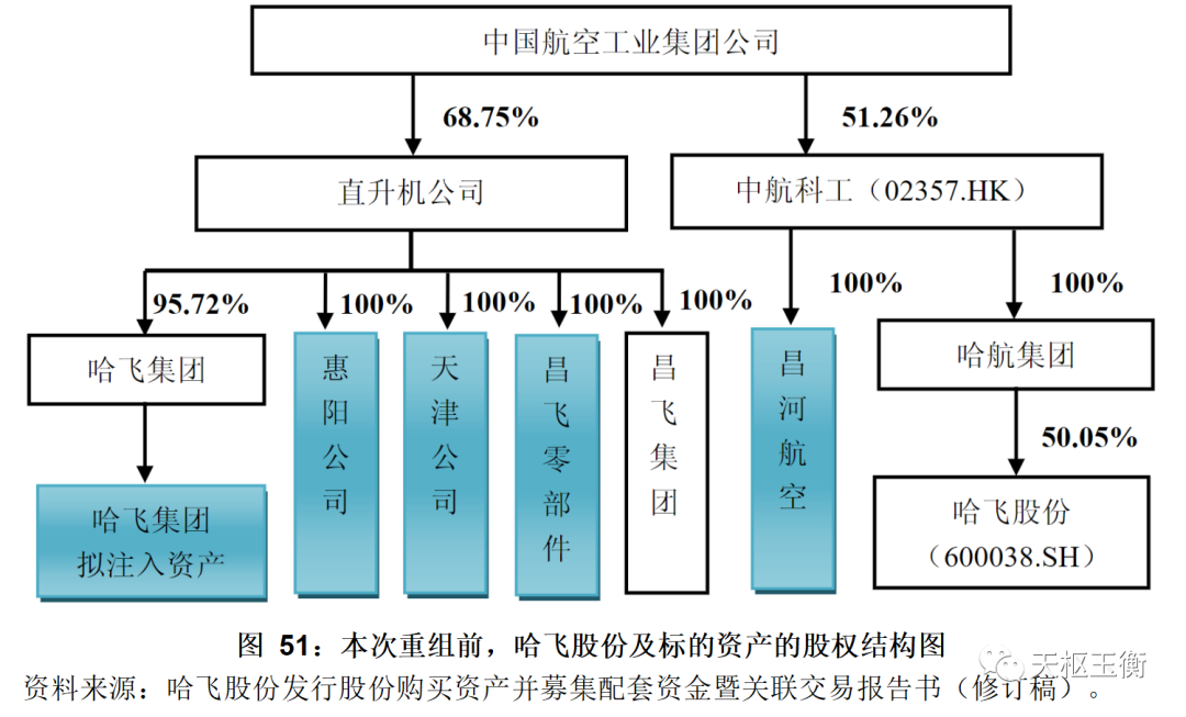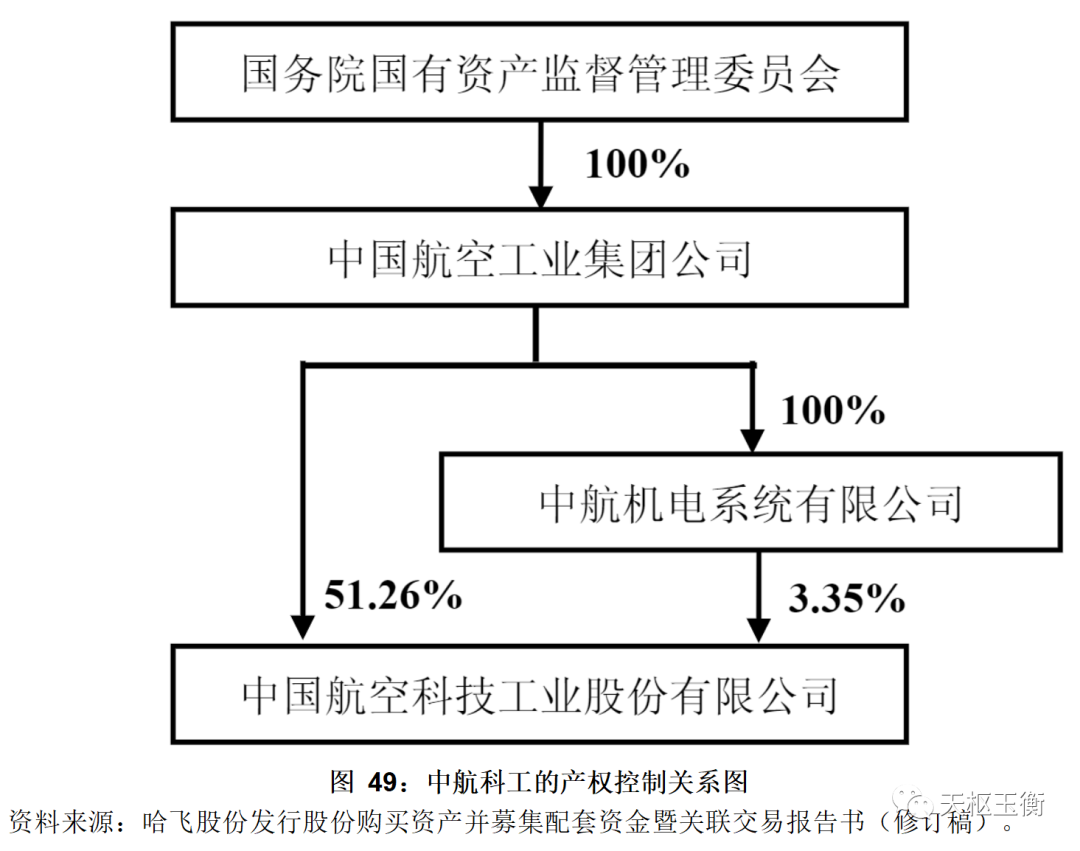 截至目前,中航科工持有哈飛集團(tuán)80.79%股權(quán),系哈飛集團(tuán)控股股東。航空工業(yè)集團(tuán)直接及間接控制中航科工60.25%股份,系哈飛集團(tuán)實(shí)際控制人。