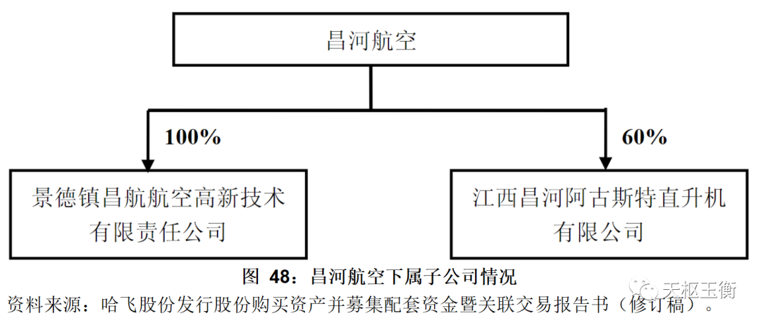 昌河航空擁有一家全資子公司景德鎮(zhèn)昌航航空高新技術(shù)有限責(zé)任公司,一家控股子公司阿古斯特公司,股權(quán)結(jié)構(gòu)如下: