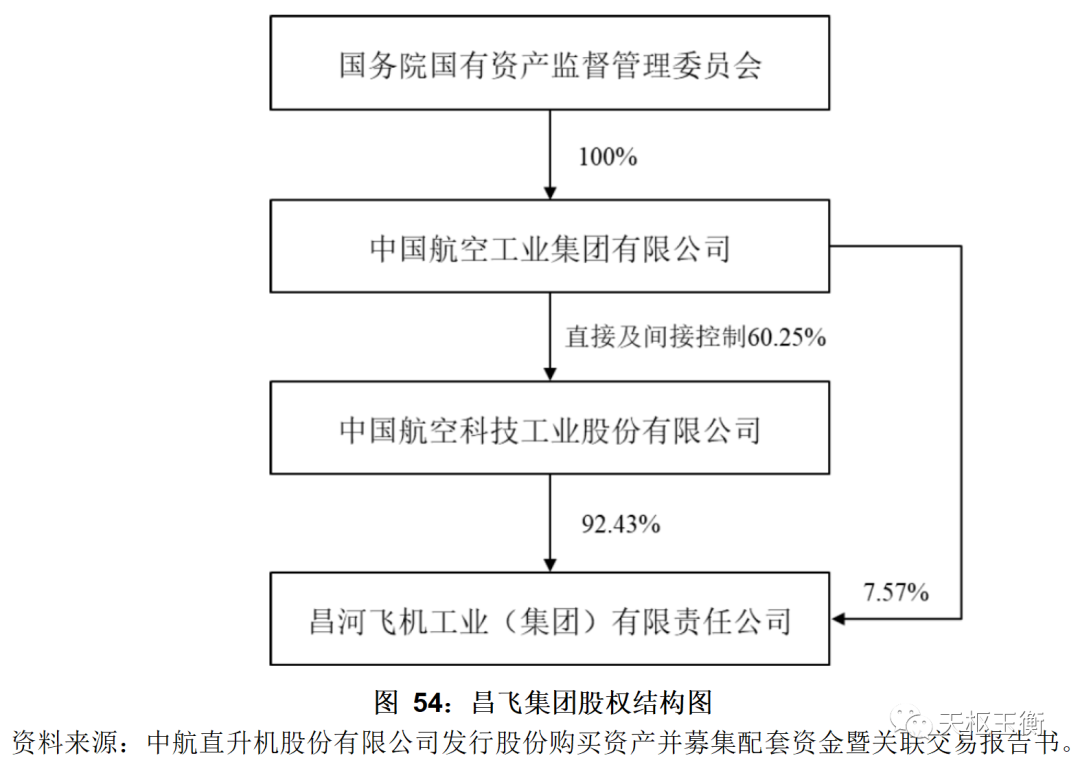 截至目前,中航科工直接持有昌飛集團(tuán)92.43%股權(quán),系昌飛集團(tuán)控股股東。航空工業(yè)集團(tuán)直接及間接控制中航科工60.25%股份,系昌飛集團(tuán)實(shí)際控制人。