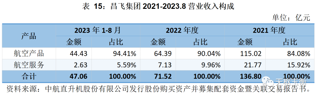 昌飛集團(tuán)2021年度、2022年度及2023年1-8月的主營業(yè)務(wù)收入構(gòu)成如下: