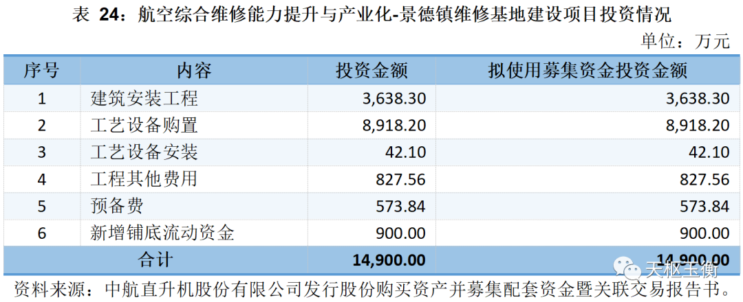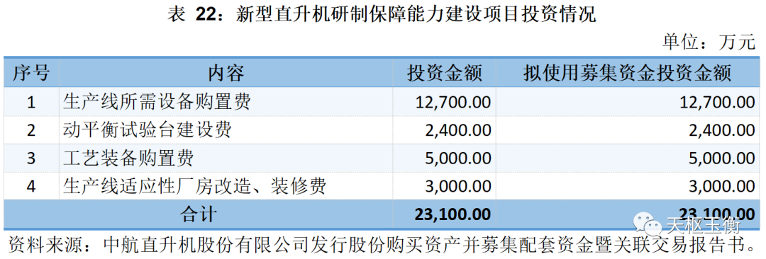 本次募集配套資金在扣除本次交易有關(guān)的稅費(fèi)及中介機(jī)構(gòu)費(fèi)用后,擬用于新型直升機(jī)與無人機(jī)研發(fā)能力建設(shè)項(xiàng)目、航空綜合維修能力提升與產(chǎn)業(yè)化項(xiàng)目、直升機(jī)生產(chǎn)能力提升項(xiàng)目等項(xiàng)目,以及補(bǔ)充本次交易后上市公司和標(biāo)的公司流動資金或償還債務(wù)。