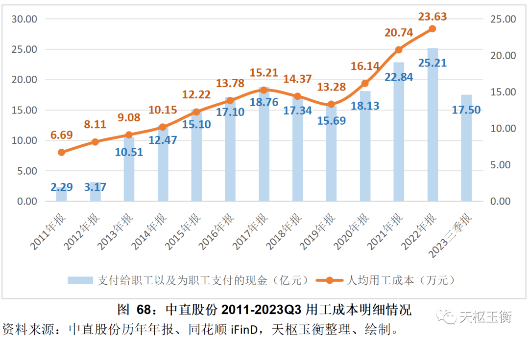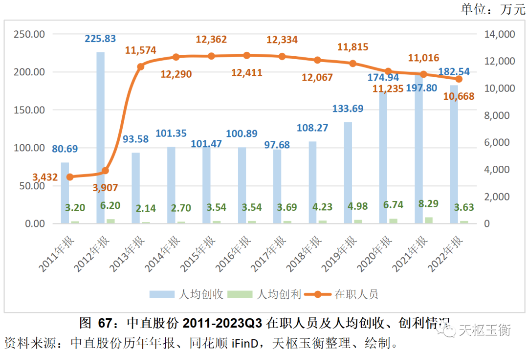 人工人數(shù)自2013年重組以來?;颈3址€(wěn)定并城逐年下降的趨勢;人均創(chuàng)收自2013年以來持續(xù)增長,但人均創(chuàng)利基本保持穩(wěn)定。
