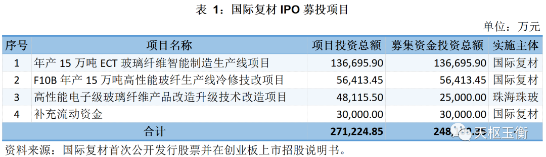 國際復材本次發(fā)行共計募集資金18.62億元,扣除發(fā)行費用后的凈額169,656.57萬元將全部用于公司主營業(yè)務,分別投入以下項目: