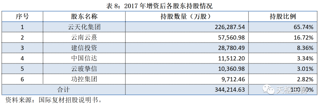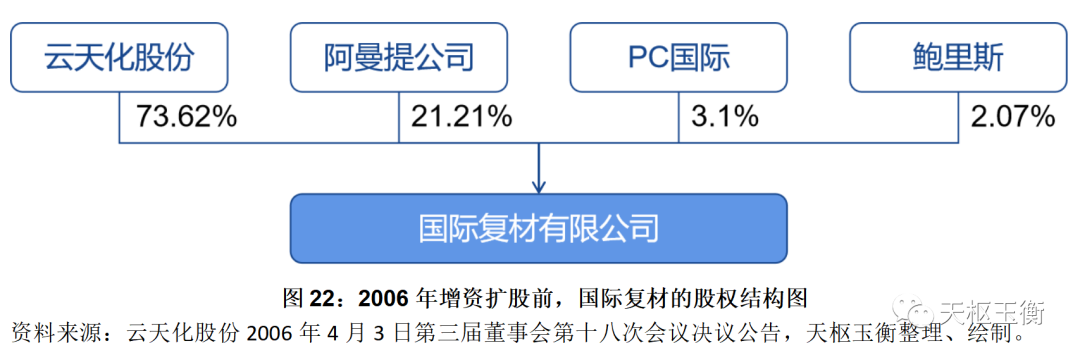 根據(jù)云天化股份2006年4月3日第三屆董事會第十八次會議決議公告顯示,國際復材增資擴股的增資方主要有:云天化股份,本次投資3000萬美元(用人民幣投入)參與公司控股子公司國際復材增資擴股;美國凱雷投資集團,本次投資6500萬美元參與公司控股子公司國際復材增資擴股;原外方股東均放棄參與本次增資擴股。