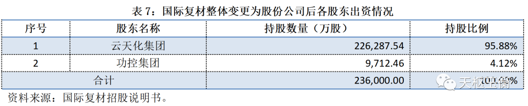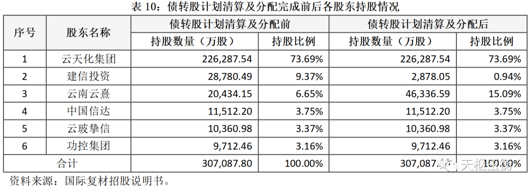 債轉(zhuǎn)股計劃清算及財產(chǎn)分配完成后,國際復材股權結構變更如下: