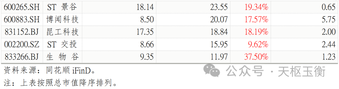 具體來(lái)看,股價(jià)最高的前五名分別為貝泰妮(68.17元/股)、健之佳(59.40元/股)、恩捷股份(56.82元/股)、云南白藥(49.15元/股)和神農(nóng)集團(tuán)(30.73元/股);我愛(ài)我家、云南城投、云維股份和云內(nèi)動(dòng)力的收盤(pán)價(jià)則均不足3元/股。